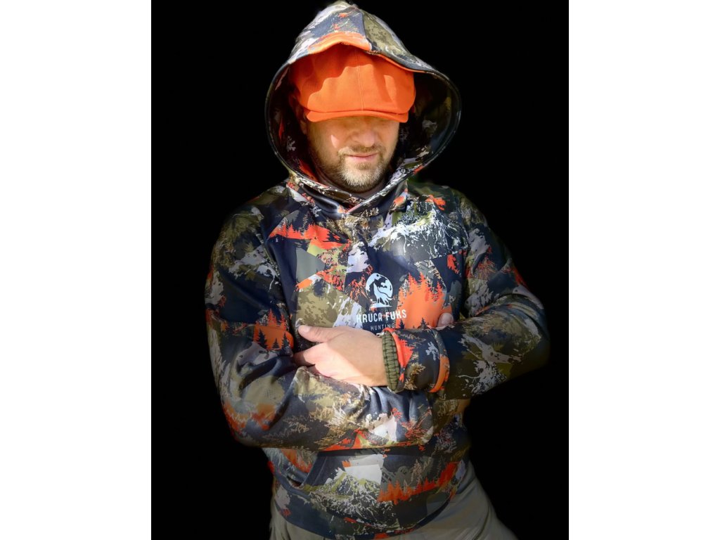 Originální kamuflážní vzor Kruca Fuks Hunting dodává mikině jedinečný vzhled a zároveň plní ochrannou funkci při skupinových lovech a naháňkách. Díky tomu se mikina řadí mezi moderní lovecké oblečení pro aktivní myslivce.