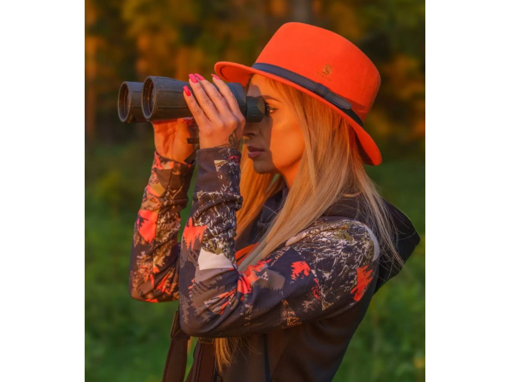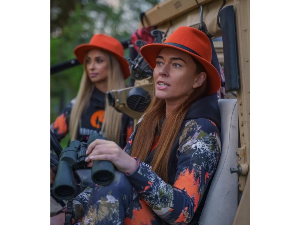 Oranžový myslivecký klobouk DIANA Luxusní dámský klobouk pro naháňky a společné lovy | bezpečnostní prvek